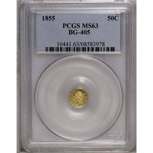 1855 50C Liberty Round 50 Cents, BG-405, R.5, MS63 PCG