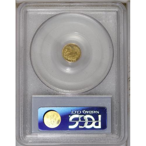 <B>1855<50C> Liberty Round 50 Cents, BG-405, R.5, MS63 PCGS.</B></I> A typically struck example with highly lustrous yellow-gold surfaces. Light abrasions mark each side, while heavy clash marks dominate the right obverse field. Population: 4 in 63, 1 finer (9/06).
