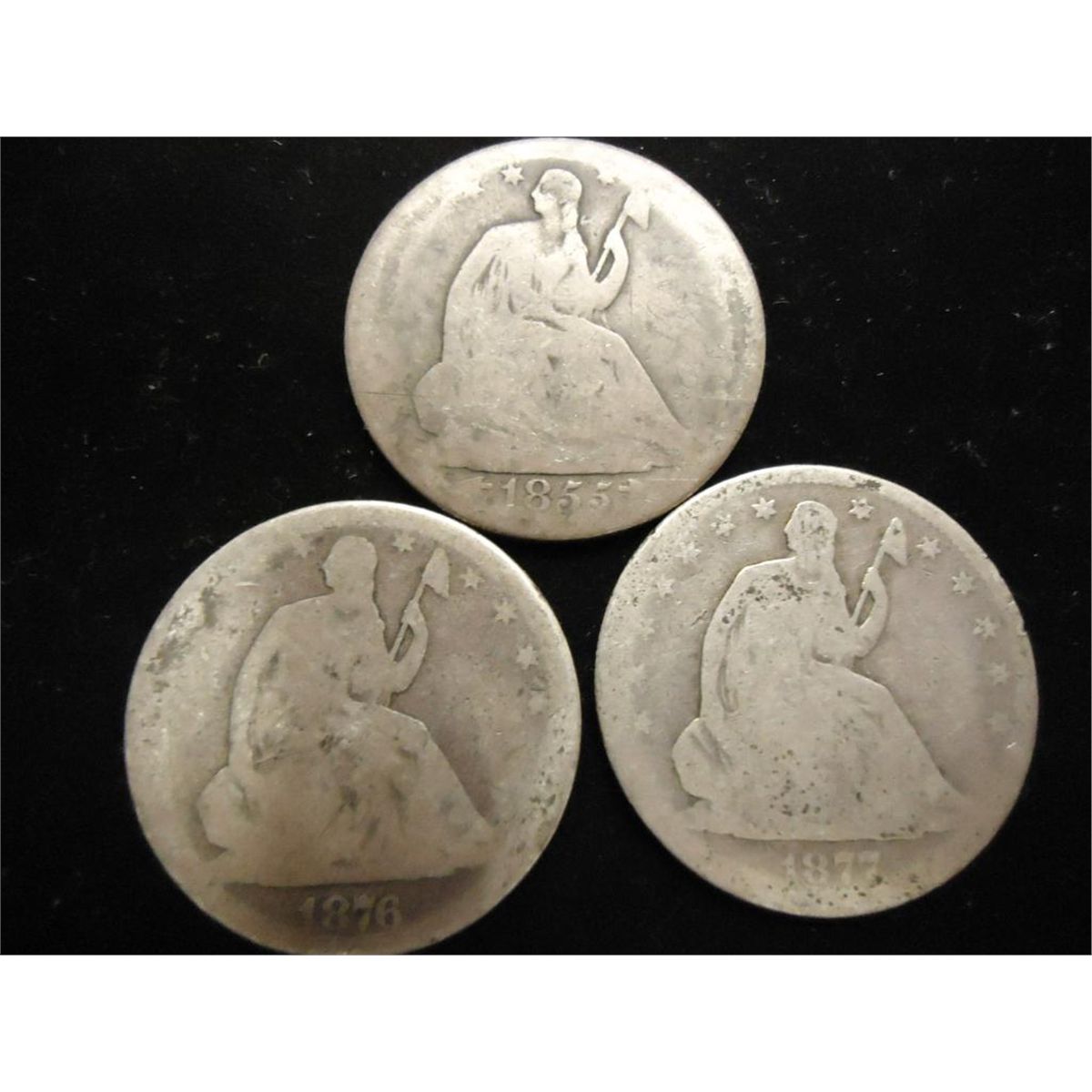 1855,76 & 77-S SEATED LIBERTY HALF DOLLARS