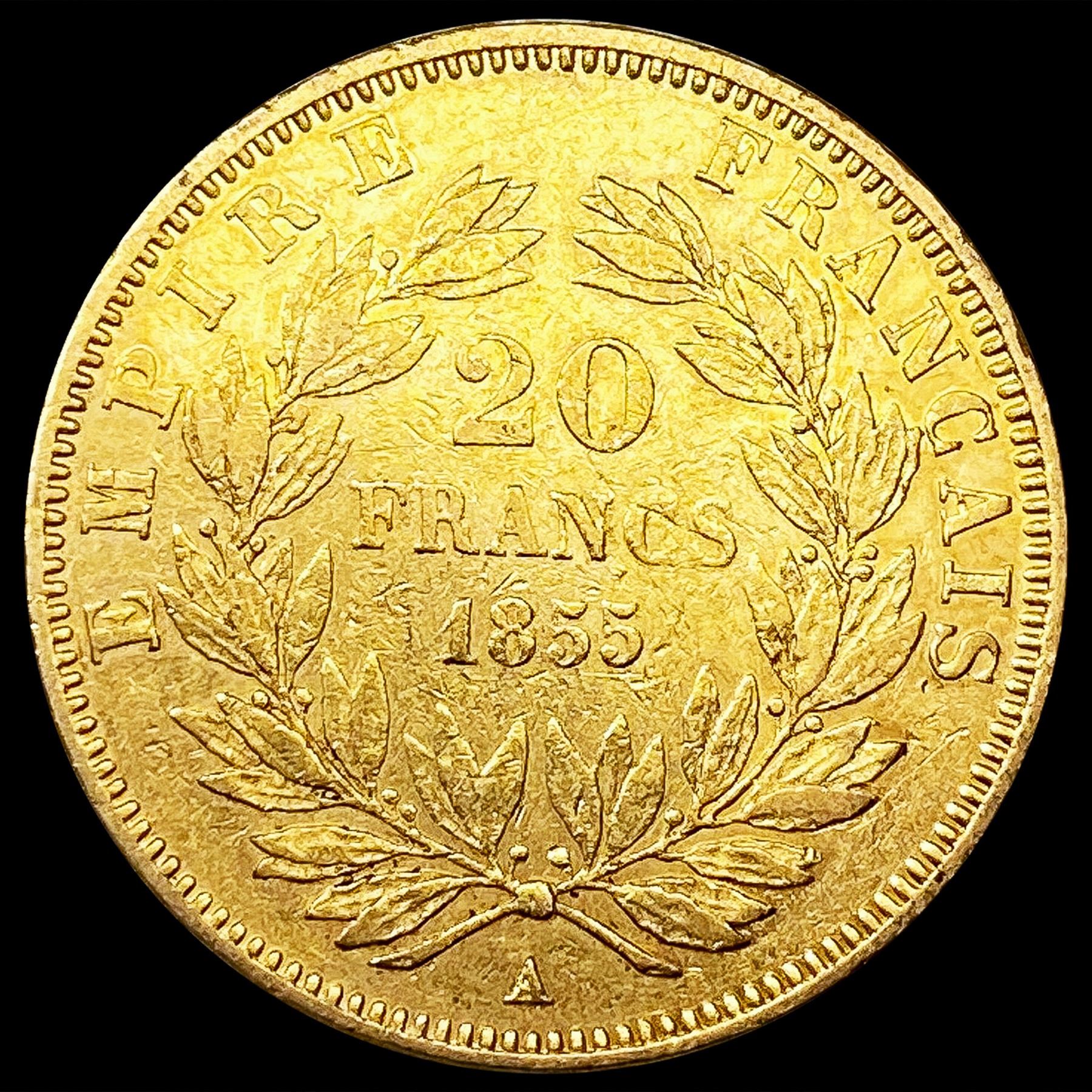 1855-A France .1867oz Gold 20 Francs CLOSELY UNCIR