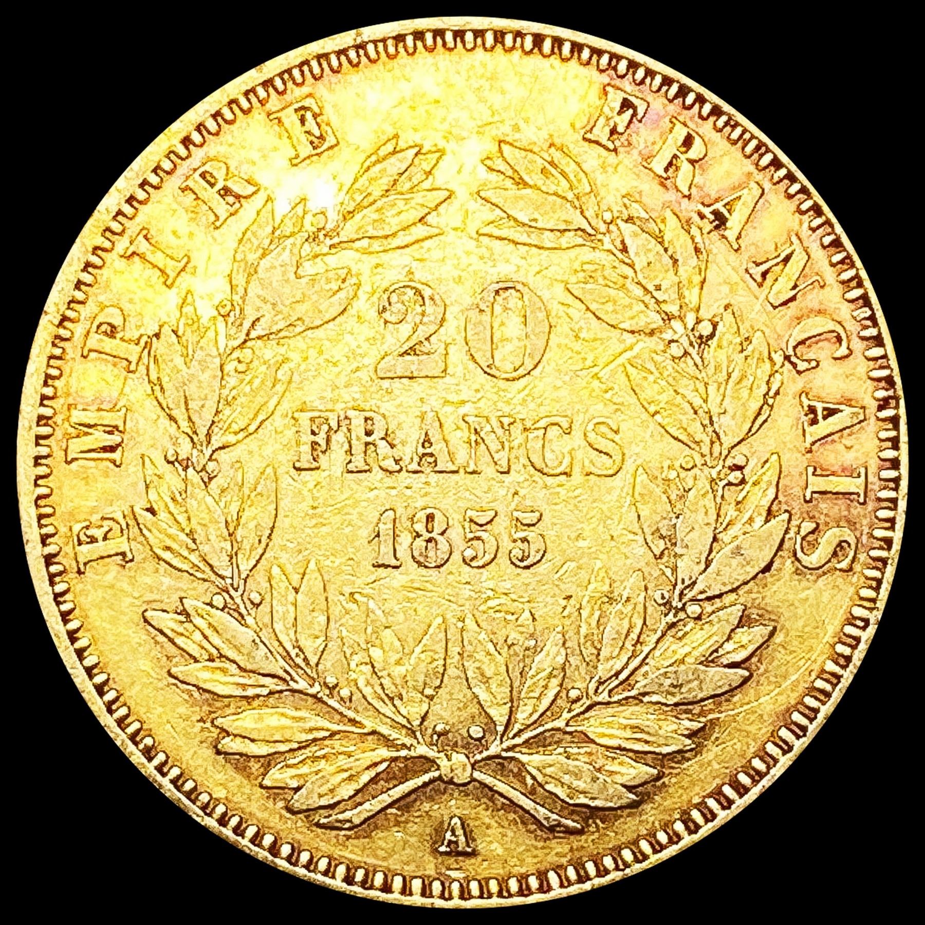 1855-A France .1867oz Gold 20 Francs CLOSELY UNCIR