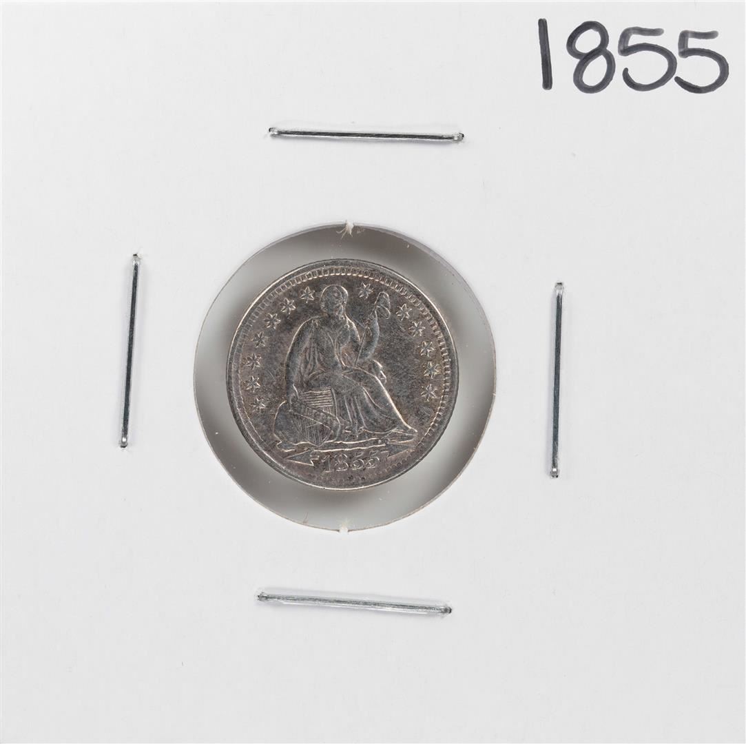 One 1855 Arrows Seated Liberty Half Dime Coin.