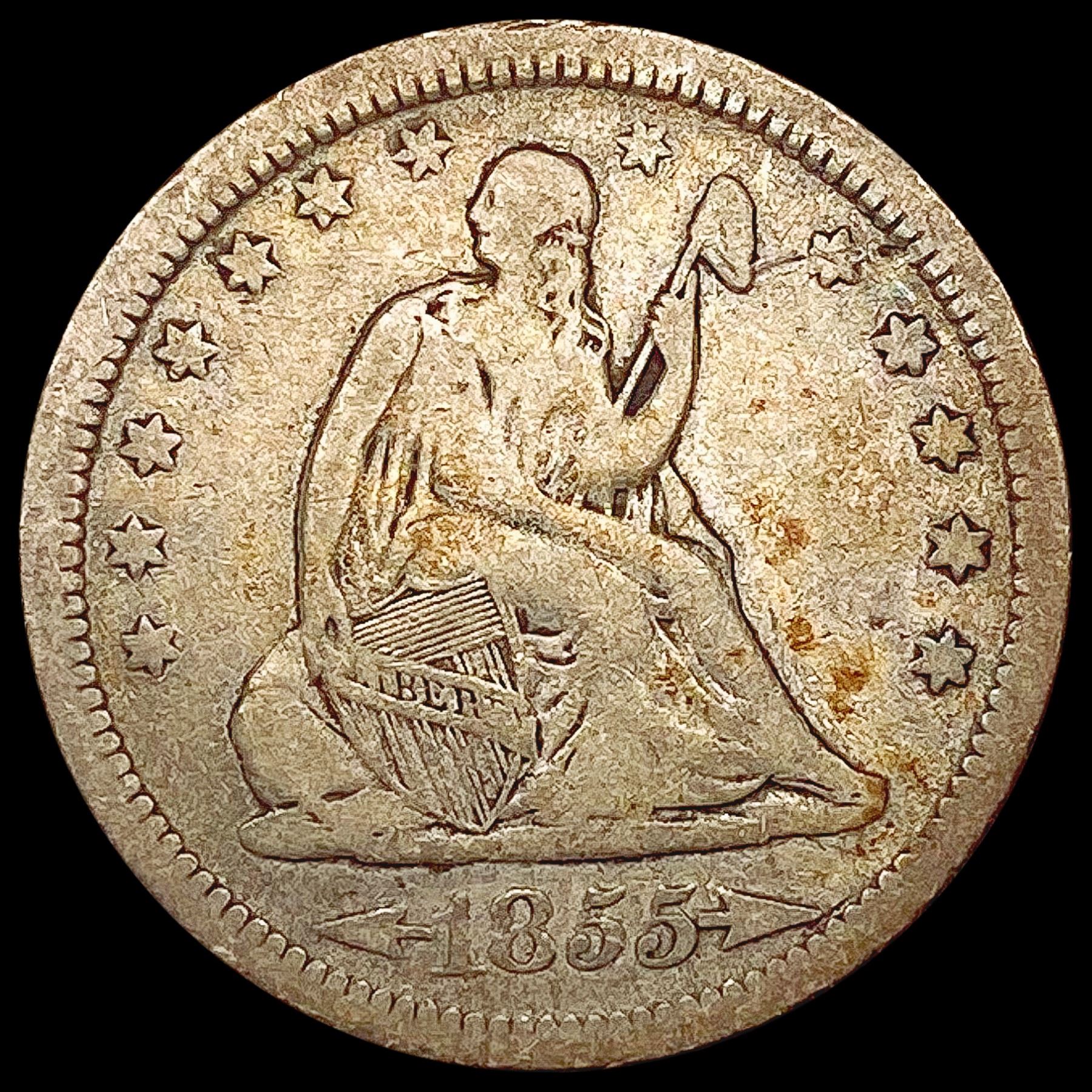 1855 Arrows Seated Liberty Quarter NICELY CIRCULATED