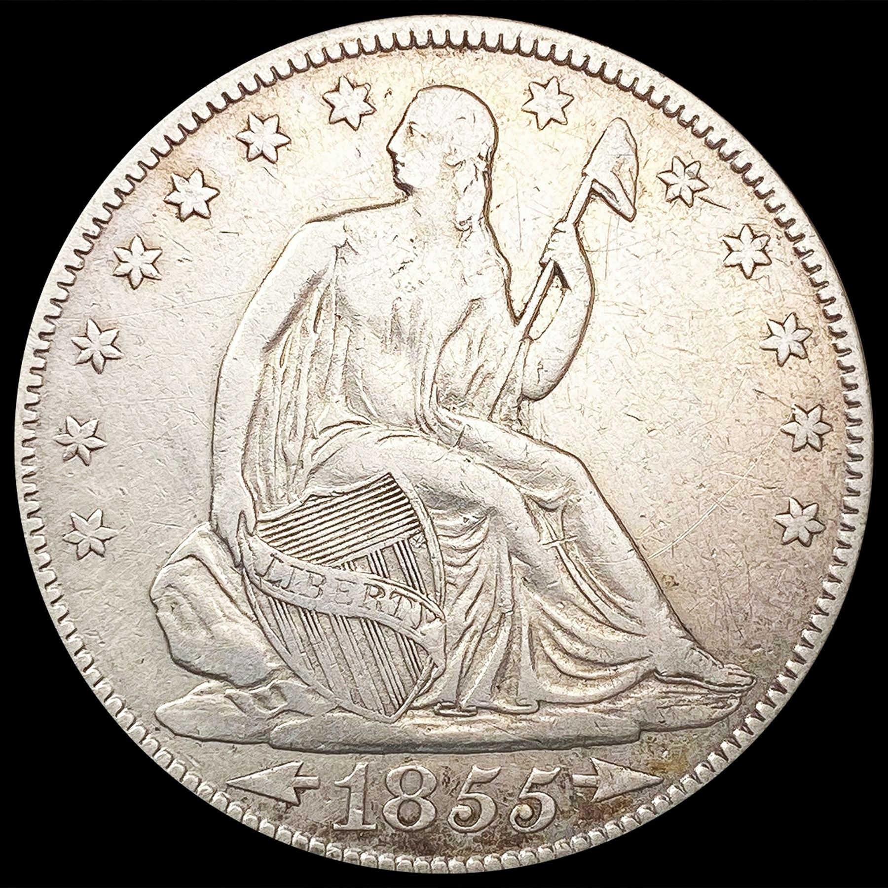 1855 Arws Seated Liberty Half Dollar LIGHTLY CIRCU
