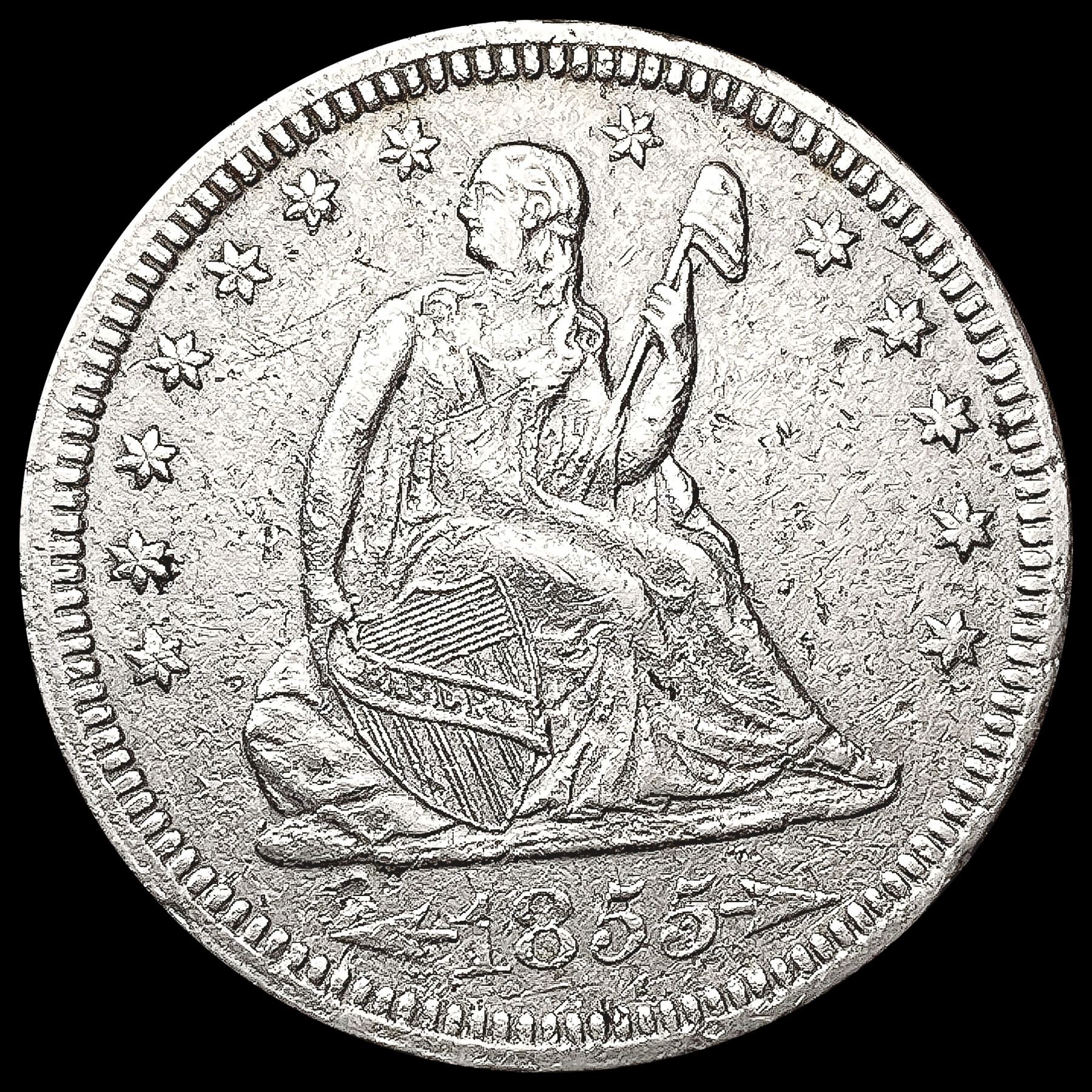 1855 Arws Seated Liberty Quarter CLOSELY UNCIRCULA