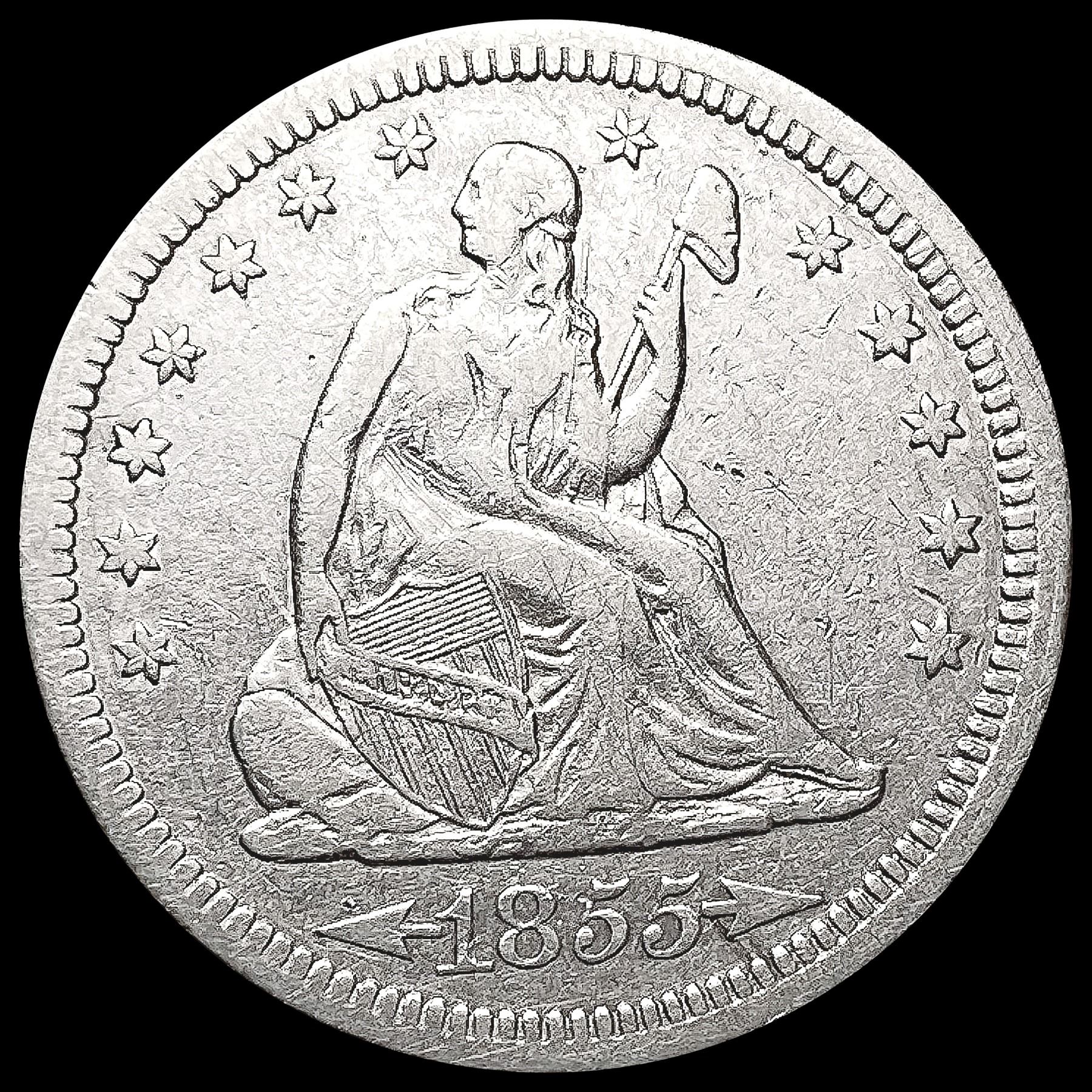 1855 Arws Seated Liberty Quarter CLOSELY UNCIRCULA