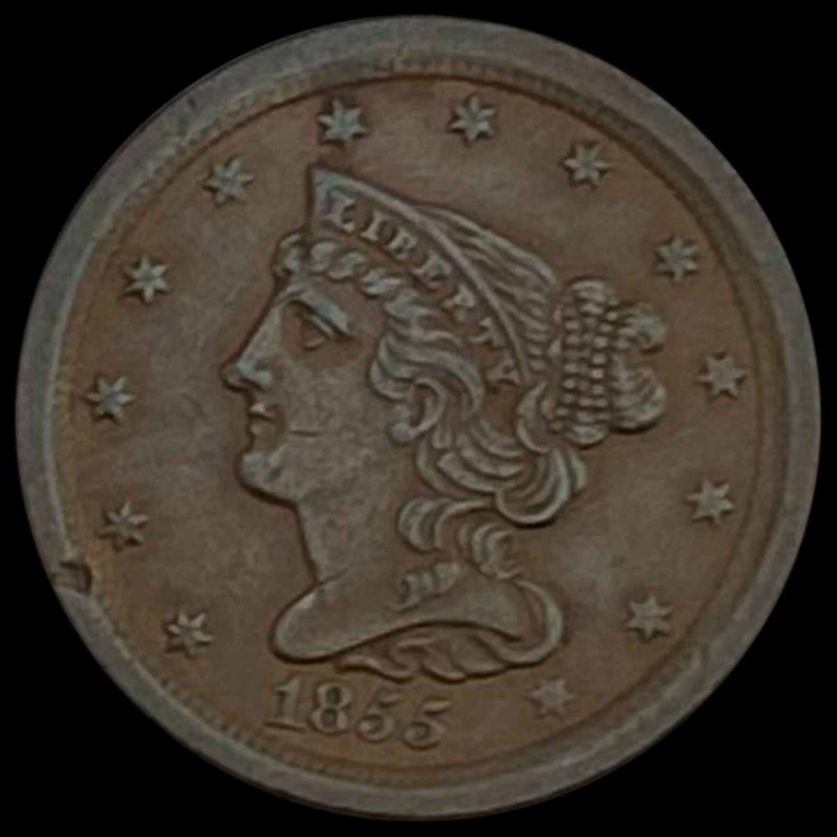 1855 Braided Hair Half Cent CLOSELY UNCIRCULATED CLOSELY UNCIRCULATED