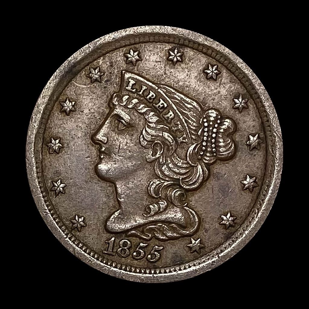 1855 Braided Hair Half Cent CLOSELY UNCIRCULATED