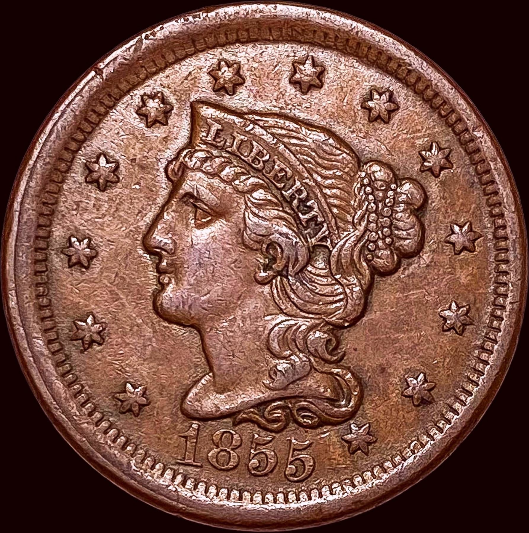 1855 Braided Hair Large Cent CLOSELY UNCIRCULATED