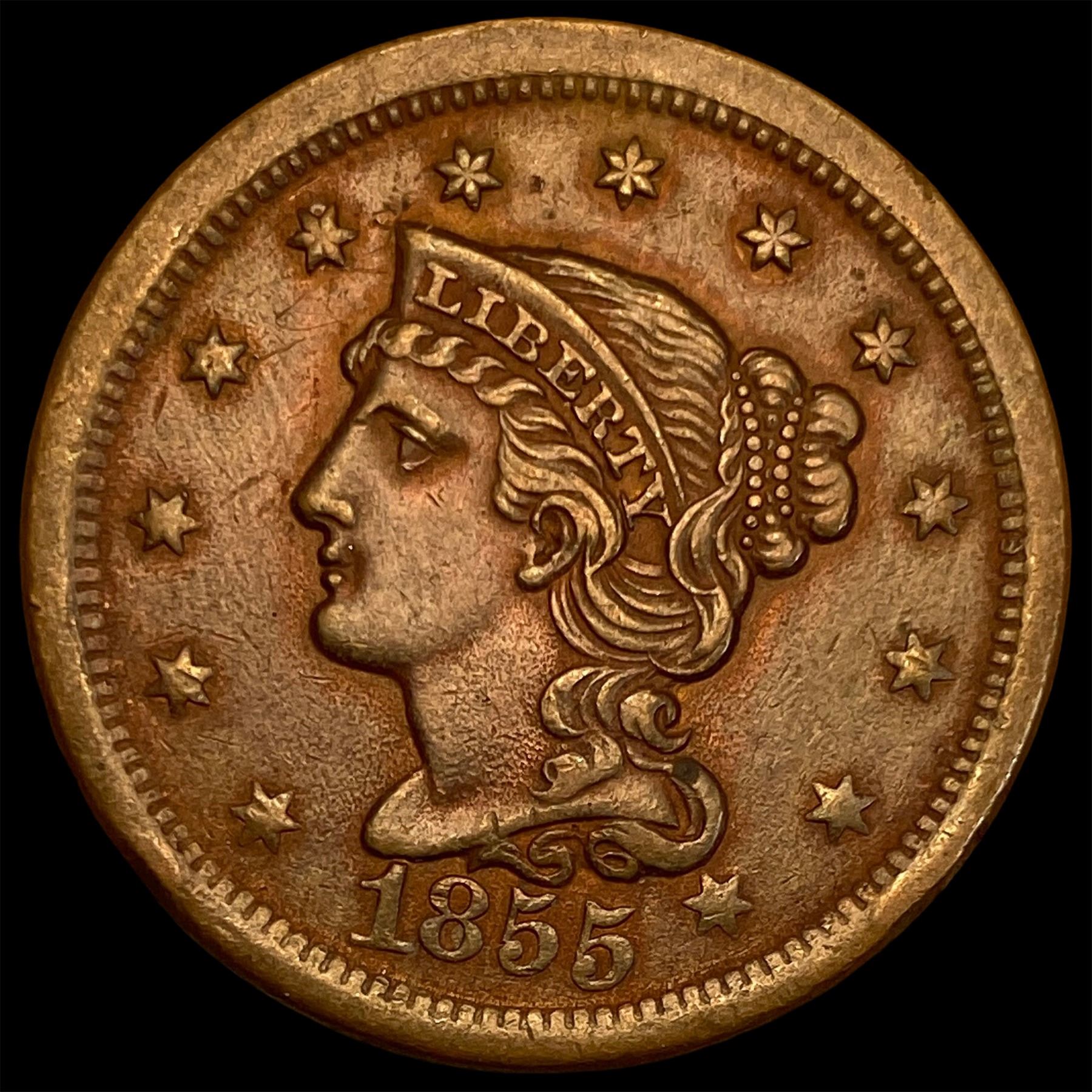 1855 Braided Hair Large Cent CLOSELY UNCIRCULATED
