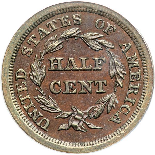 1855 C-1 Breen 1-A R6 (as a proof). PCGS graded Proof 62 Brown. Glossy medium brown with hints of very faded mint red on the reverse. There is a planchet flake under the 1, a short struck-through line in the field right of star 4, and a small planchet flake left of this struck-through mark, all as minted. Sharp EDS with die polishing lines passing NE to SW in the obverse fields, clearest at stars 12 & 13. The fields are hard and reflective and the dentils are fully impressed all the way around both sides. Could be a proof, and PCGS certainly believes it's a proof strike. Our grade is MS63 Prooflike. PCGS population 1; the only Proof Brown for the variety. The attribution and Davy provenance are noted on the PCGS label. Davy #55.1.7.