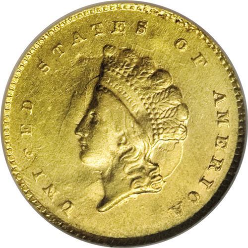 <B>1855-C G$1 AU58 NGC.</B></I> Unlisted Variety. In his reference <I>Gold Coins of the Charlotte Mint: 1838-1861</B></I> (1988), Douglas Winter states, "One die variety is known to exist." However, the present piece is from a different reverse die than his plate coin. The date is entered further right, with the second 5 beneath the right half of the A in DOLLAR. This is the preferable reverse die, since DOLLAR and 1855 are well struck compared to examples of Variety 9-K. The 1855-C is essential to a Charlotte Mint type set, since it is the sole Type Two issue. Only 9,803 pieces were struck, and demand for survivors is formidable. This bold and partly lustrous straw-gold representative displays mint-made clash marks and minor strike-throughs, but post-strike distractions are trivial. Census: 41 in 58, 13 finer (11/06).<BR><BR><b>Shipping:</b> Coin/Currency (<a target="_blank" href="http://www.heritageauctions.com/common/shipping.php">view shipping information</a>)