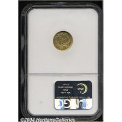 <B>1855-C<G$1> AU58 NGC.</B></I> Variety 9-K, the only known die pairing. The 1855-C yields to only the 1849-C Open Wreath for high grade rarity honors among C-mint Gold Dollars. The typical survivor of this low mintage (9,803 pieces) issue in today's market is apt to grade no higher than VF. This one is just a bit weak at the centers but still a well preserved example of this popular one-year type. The amazingly smooth surfaces below subtle natural champagne-gold color. A curving die clash line (as struck) is noted from the final feather on the headdress down to Liberty's lowest haircurl. As nearly every known 1855-C Gold Dollar has been cleaned or dipped at one time, the collector who appreciates originality should pay careful attention to this coin. <BR><BR><B>Important notice:</B> Heritage usually auctions material at the rate of 200-250 lots per hour. On some occasions eBay Live bid software or the Internet may not be able to keep up with the pace of the auction. We recommend placing a realistic absentee bid now as insurance to avoid disappointment. Occasionally the auctioneer may eliminate or reject an eBay Live bid, and the auctioneer may also reopen a lot after the close of the eBay live bidding (usually because we missed an audience bid), and may reject your bid even if it shows you as the winning bidder. By bidding via eBay Live, you agree that Heritage may award the lot to another bidder at its sole discretion under the circumstances described above or any other reasonable circumstances. Since eBay bids are not shown to us until we open the lot on the floor, we treat those bids just like floor bids. In most cases the floor responds before the eBay bid is presented to us, due to Internet lag time, so for consistency we have made it a policy that floor bids are always considered first over tie eBay live bids. Also please note that all Heritage lots purchased through eBay Live carry a 20% Buyer's Premium. Please make sure you read the Terms and Conditions before you bid.