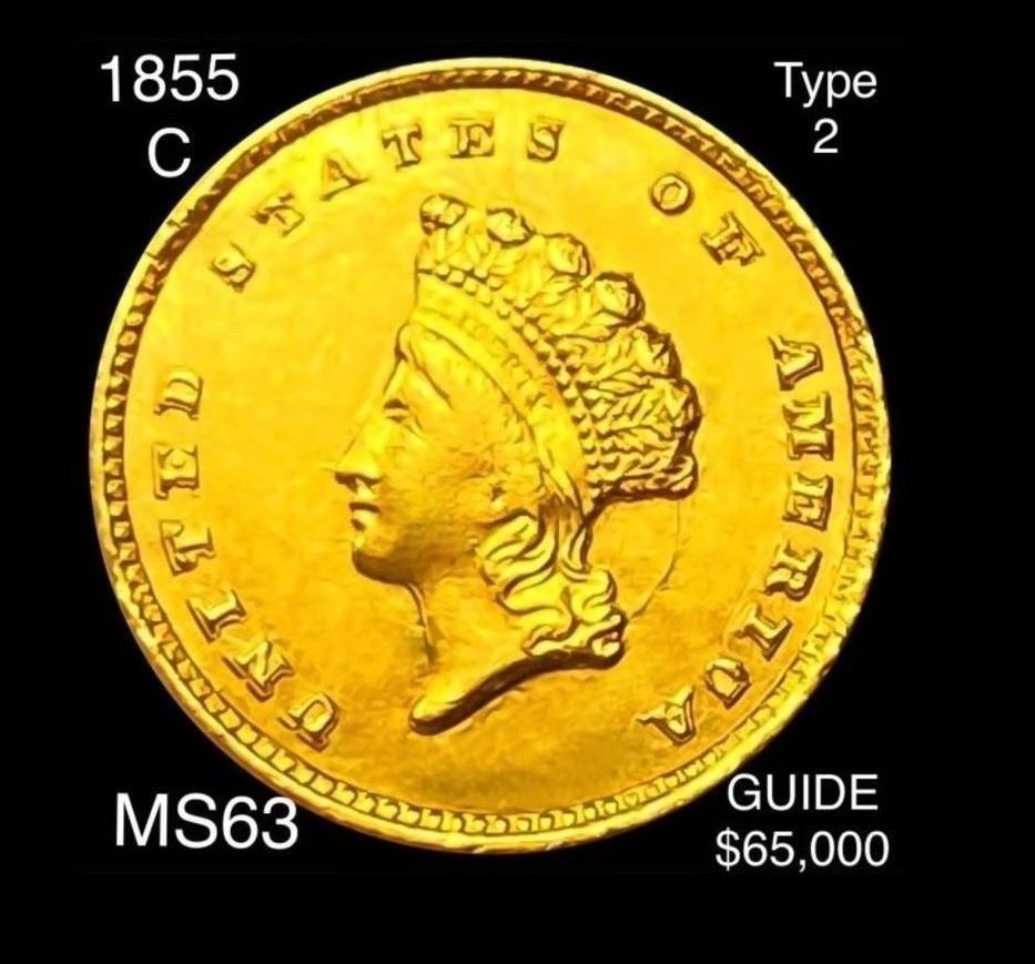 1855-C Rare Gold Dollar CHOICE BU