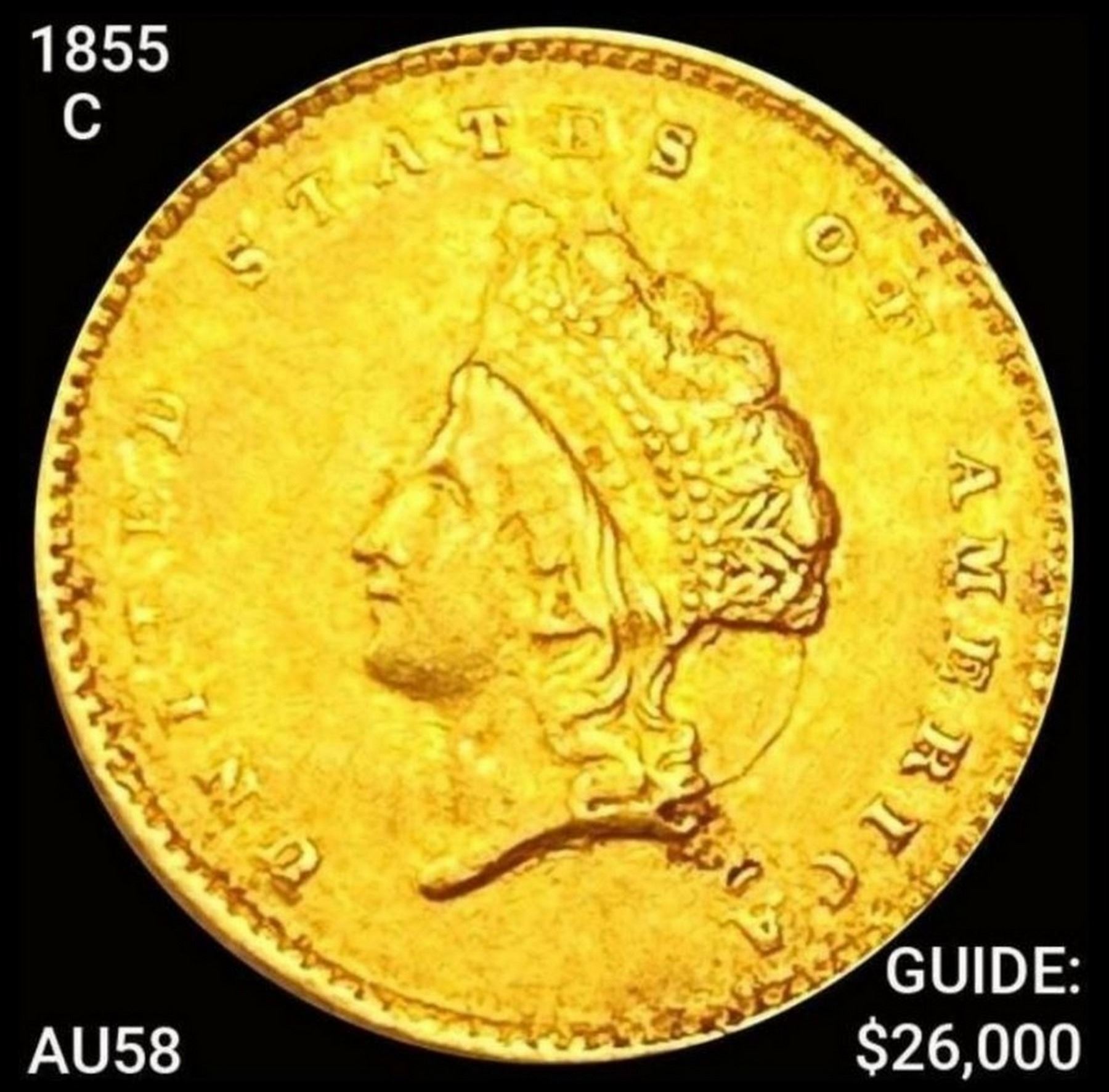 1855-C TY2 Rare Gold Dollar CHOICE AU