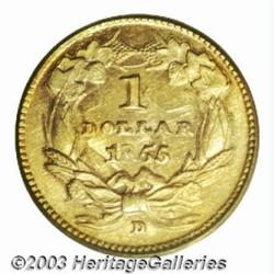 1855-D G$1 MS62 PCGS. Partial Date. Variety 7-I. (per Doug Winter's second edition and revised attribution system). Small mintmark placed high in the field and under the right ribbon end. Late die state with a distinct crack to the right of the mintmark.RARITY INFORMATION: Only 1,811 examples were struck of this issue. The 1855-D is the second rarest Dahlonega gold dollar in terms of overall rarity and it is the single rarest in high grades. Of the 70-80 pieces known, around a dozen grade About Uncirculated. There are just four known in Uncirculated, of which two are included in the Green Pond Collection (the others are in the Duke's Creek Collection).STRIKE: The great majority of 1855-D gold dollars are quite poorly struck. However, this piece has much better detail than usual. The obverse has some weakness on the hair below LIBE with the rest of the strands showing clear separation. The plumes in the headdress are fully detailed while most of the denticles are clear. The reverse is very sharp with the wreath displaying complete detail. The 8 in the date is weak, as usual, while the other three digits are fully brought up. Both sides show a number of clashmarks.SURFACES: A careful examination of the surfaces reveals virtually no disturbances other than the aforementioned clashmarks. This is quite remarkable for the issue as nearly every known 1855-D shows hairlines from having been mishandled as well as numerous circulation marks and evidence of poor planchet preparation.LUSTER: The typical 1855-D gold dollar is worn to the point that no luster remains. This piece has very good luster with a slightly satiny texture that is a bit reflective on the obverse and more frosty on the reverse.COLORATION: The obverse is a light green-gold and it is framed by an attractive deep orange-gold band at the periphery. The reverse is a light rose-gold hue that deepens a bit at the lower portion of that side.EYE APPEAL: Unless one is a specialist in Dahlonega coinage, it may be difficult to realize just how challenging it is to locate an 1855-D gold dollar with good eye appeal. This piece is notable for its good strike, outstanding surfaces, pleasing color, and good luster.COMPARABLES: The remarkable Bass II example, graded MS62 by PCGS and notable for its extremely sharp date, brought an incredible $92,000 in 1999. An NGC MS60 with a full date sold in our January 2003 sale for $24,150.PEDIGREE: Ex: Hancock and Harwell; 1999 ANA (Heritage, 8/99), lot 7627 (bought back at $43,700); Chestatee Collection (Duke's Creek Collection duplicates); Hancock and Harwell; Michigan Collection; Hancock and Harwell; Jeff Notrica; Doug Winter; 1991 FUN Sale (Mid-American, 1/91), lot 1727; Jascha Heifetz Collection (Superior, 10/89), lot 3899; Connoisseur's Collection (Superior (1/89), lot 256; Dr. Philip Weinstein; 1986 GNA Sale (Mid-American, 5/86), lot 1817; Auction '82 (Paramount's session), lot 1841; Donald Groves Collection (Stack's, 11/74), lot 473; Ullmer Sale (Stack's, 5/74), lot 340; and Miles Collection (Stack's, 9/68), lot 27. Graded Mint State 62 by PCGS. This coin had been graded AU50 to MS63 in its numerous auction appearances. This is the plate coin in the second edition of Winter's book on Dahlonega gold and is listed as the third finest known in the updated Condition Census. Important notice: Heritage usually auctions material at the rate of 200-250 lots per hour. On some occasions eBay Live bid software or the Internet may not be able to keep up with the pace of the auction. We recommend placing a realistic absentee bid now as insurance to avoid disappointment. Occasionally the auctioneer may eliminate or reject an eBay Live bid, and the auctioneer may also reopen a lot after the close of the eBay live bidding (usually because we missed an audience bid), and may reject your bid even if it shows you as the winning bidder. By bidding via eBay Live, you agree that Heritage may award the lot to another bidder at its sole discretion under the circumstances described above or any other reasonable circumstances. Also please note that all Heritage lots purchased through eBay Live carry a 20% Buyer's Premium. Please make sure you read the Terms and Conditions before you bid.