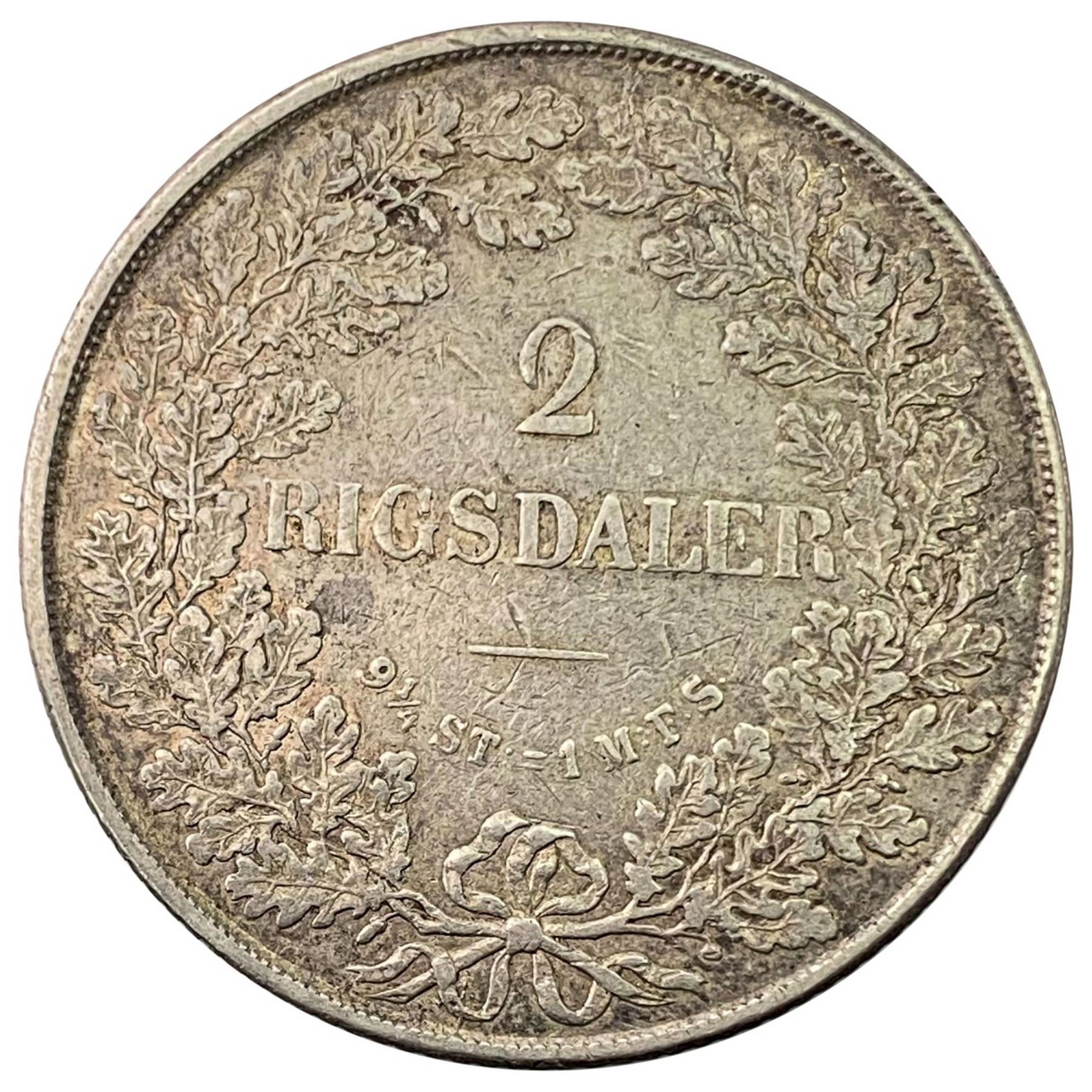 1855 Denmark Silver 2 Rigsdaler NEARLY UNCIRCULATED