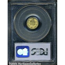 <table><tr><td><table><tr><td>1855 G$1 AU55 PCGS. Well struck with flashy, highly reflective, semi-prooflike fields, numerous wispy hairlines, and a faint pinscratch across the portrait of Miss Liberty. <BR><BR><B>Important notice:</B> Heritage usually auctions material at the rate of 200-250 lots per hour. On some occasions eBay Live bid software or the Internet may not be able to keep up with the pace of the auction. We recommend placing a realistic absentee bid now as insurance to avoid disappointment. Occasionally the auctioneer may eliminate or reject an eBay Live bid, and the auctioneer may also reopen a lot after the close of the eBay live bidding (usually because we missed an audience bid), and may reject your bid even if it shows you as the winning bidder. By bidding via eBay Live, you agree that Heritage may award the lot to another bidder at its sole discretion under the circumstances described above or any other reasonable circumstances. Since eBay bids are not shown to us until we open the lot on the floor, we treat those bids just like floor bids. In most cases the floor responds before the eBay bid is presented to us, due to Internet lag time, so for consistency we have made it a policy that floor bids are always considered first over tie eBay live bids. Also please note that all Heritage lots purchased through eBay Live carry a 20% Buyer's Premium. Please make sure you read the Terms and Conditions before you bid. <BR><BR><B>IMPORTANT ANNOUNCEMENT ABOUT RESERVES:</B> Heritage now divulges all reserves on its web site 7 days before every auction. If you want to know whether the reserve on this lot has been met, and if not, what the reserve amount is, please visit this lot page on the HeritageCoin.com web site, or email: bid@HeritageGalleries.com </span></font></td></tr></table></td></tr></table>