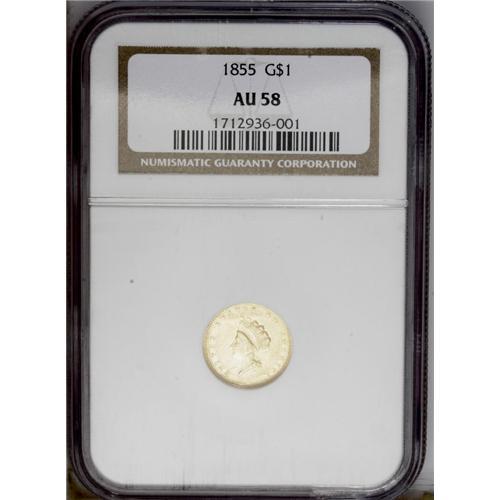1855 G$1 AU58 NGC. The second year of this brief three 1855[G$1] AU58 NGC.