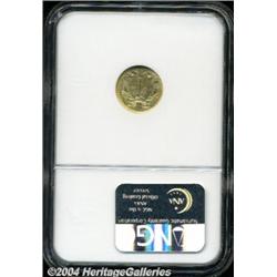 <B>1855<G$1> AU58 NGC.</B></I> Light rub on Liberty's hair beneath the coronet denies an Uncirculated grade, however, much luster is present and there are no relevant abrasions. The LL in DOLLAR is soft, but a generally sharp example. Struck from boldly clashed dies, which is usual for the short-lived type. <BR><BR><B>Important notice:</B> Heritage usually auctions material at the rate of 200-250 lots per hour. On some occasions eBay Live bid software or the Internet may not be able to keep up with the pace of the auction. We recommend placing a realistic absentee bid now as insurance to avoid disappointment. Occasionally the auctioneer may eliminate or reject an eBay Live bid, and the auctioneer may also reopen a lot after the close of the eBay live bidding (usually because we missed an audience bid), and may reject your bid even if it shows you as the winning bidder. By bidding via eBay Live, you agree that Heritage may award the lot to another bidder at its sole discretion under the circumstances described above or any other reasonable circumstances. Since eBay bids are not shown to us until we open the lot on the floor, we treat those bids just like floor bids. In most cases the floor responds before the eBay bid is presented to us, due to Internet lag time, so for consistency we have made it a policy that floor bids are always considered first over tie eBay live bids. Also please note that all Heritage lots purchased through eBay Live carry a 20% Buyer's Premium. Please make sure you read the Terms and Conditions before you bid. </span></font></tr></table></td></tr></table>