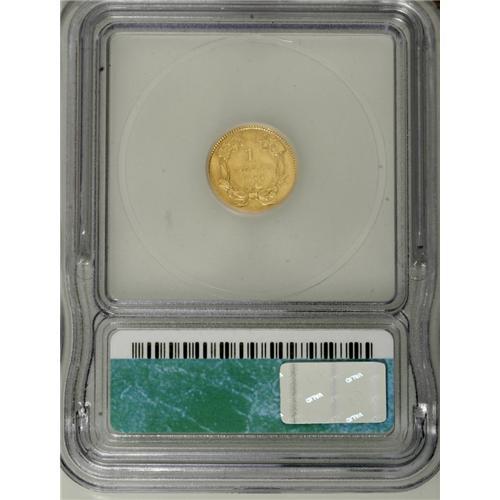 <B>1855 G$1 MS61 PCGS.</B></I> A lustrous and well struck example of the short-lived Type Two gold dollars. On this piece, the frosty reverse exhibits the usual light clash marks.<BR><BR><b>Shipping:</b> Coins & Currency (<a target="_blank" href="http://www.heritageauctions.com/common/shipping.php">view shipping information</a>)