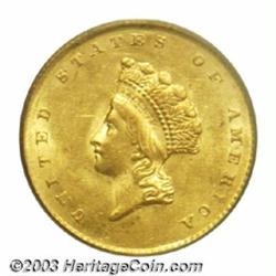 <TABLE cellSpacing=0 cellPadding=0 width="100%" bgColor=#000000 border=0><TBODY><TR><TD width="100%"><TABLE cellSpacing=1 cellPadding=3 width="100%" border=0><TBODY><TR><TD width="100%" bgColor=#79735c><FONT face=arial color=#ffffff size=3><B>Description</B> </FONT></TD></TR><TR><TD width="100%" bgColor=#ffffff><FONT face=arial size=2><B>1855 G$1 MS62 PCGS.</B></I> Satiny with above-average sharpness for this briefly minted design, being significantly enhanced by pleasing reddish and olive patina. Faint die clashing appears on each side, as nearly always for the type. The obverse appears a bit finer than the assigned grade and, sure enough, it is the presence of a cluster of marks about the date and denomination that appears to have kept this attractive Type Two Gold Dollar from a Select rating.<BR><I>From the Davis Collection.</B></I> </FONT></TD></TR></TBODY></TABLE></TD></TR></TBODY></TABLE><BR><A name=PricesRealized></A><TABLE cellSpacing=0 cellPadding=0 width="100%" bgColor=#000000 border=0><TBODY><TR><TD width="100%"><TABLE cellSpacing=1 cellPadding=3 width="100%" border=0><TBODY><TR><TD width="100%" bgColor=#79735c><A name=PR><FONT face=arial color=#ffffff size=3><B>Previous Prices from Heritage Auctions</B> </FONT></A></TD></TR><TR><TD bgColor=#f6f6ed><TABLE cellSpacing=0 cellPadding=0 width="100%" border=1><TBODY><TR><TD align=middle width="33%"><B>Date</B></TD><TD align=middle width="33%"><B>Service</B></TD><TD align=middle width="33%"><B>Price</B></TD></TR><TR bgColor=whitesmoke><TD width="33%"><B>08/17/1996</B></TD><TD width="33%">PCGS</TD><TD width="33%">$5,252.50</TD></TR><TR bgColor=whitesmoke><TD width="33%"><B>05/06/1994</B></TD><TD width="33%">PCGS</TD><TD width="33%">$3,630.00</TD></TR><TR bgColor=whitesmoke><TD width="33%"><B>10/01/1999</B></TD><TD width="33%">PCGS</TD><TD width="33%">$11,500.00</TD></TR><TR bgColor=whitesmoke><TD width="33%"><B>09/01/1994</B></TD><TD width="33%">PCGS</TD><TD width="33%">$7,975.00</TD></TR><TR bgColor=whitesmoke><TD width="33%"><B>06/01/1998</B></TD><TD width="33%">PCGS</TD><TD width="33%">$12,320.00</TD></TR><TR bgColor=whitesmoke><TD width="33%"><B>10/01/2001</B></TD><TD width="33%">NGC</TD><TD width="33%">$5,462.00</TD></TR><TR bgColor=whitesmoke><TD width="33%"><B>05/01/2001</B></TD><TD width="33%">NGC</TD><TD width="33%">$6,900.00</TD></TR><TR bgColor=whitesmoke><TD width="33%"><B>04/05/2001</B></TD><TD width="33%">NGC</TD><TD width="33%">$4,600.00</TD></TR><TR bgColor=whitesmoke><TD width="33%"><B>04/05/2001</B></TD><TD width="33%">NGC</TD><TD width="33%">$4,600.00</TD></TR><TR bgColor=whitesmoke><TD width="33%"><B>08/02/1997</B></TD><TD width="33%">NGC</TD><TD width="33%">$5,290.00</TD></TR><TR bgColor=whitesmoke><TD width="33%"><B>04/23/1999</B></TD><TD width="33%">NGC</TD><TD width="33%">$7,475.00</TD></TR><TR bgColor=whitesmoke><TD width="33%"><B>02/06/1995</B></TD><TD width="33%">NGC</TD><TD width="33%">$3,520.00</TD></TR><TR bgColor=whitesmoke><TD width="33%"><B>08/13/1996</B></TD><TD width="33%">NGC</TD><TD width="33%">$5,170.00</TD></TR><TR bgColor=whitesmoke><TD width="33%"><B>01/01/1994</B></TD><TD width="33%">NGC</TD><TD width="33%">$5,775.00</TD></TR><TR bgColor=whitesmoke><TD width="33%"><B>05/03/2003</B></TD><TD width="33%">PCGS</TD><TD width="33%">$5,405.00</TD></TR><TR bgColor=whitesmoke><TD width="33%"><B>01/11/2003</B></TD><TD width="33%">PCGS</TD><TD width="33%">$6,037.50</TD></TR><TR bgColor=whitesmoke><TD width="33%"><B>09/28/2002</B></TD><TD width="33%">PCGS</TD><TD width="33%">$4,715.00</TD></TR><TR bgColor=whitesmoke><TD width="33%"><B>02/01/2001</B></TD><TD width="33%">PCGS</TD><TD width="33%">$6,325.00</TD></TR><TR bgColor=whitesmoke><TD width="33%"><B>05/31/2001</B></TD><TD width="33%">PCGS</TD><TD width="33%">$5,060.00</TD></TR><TR bgColor=whitesmoke><TD width="33%"><B>01/07/2000</B></TD><TD width="33%">PCGS</TD><TD width="33%">$6,440.00</TD></TR><TR bgColor=whitesmoke><TD width="33%"><B>07/29/1997</B></TD><TD width="33%">PCGS</TD><TD width="33%">$6,160.00</TD></TR><TR bgColor=whitesmoke><TD width="33%"><B>03/22/1997</B></TD><TD width="33%">PCGS</TD><TD width="33%">$8,050.00</TD></TR><TR bgColor=whitesmoke><TD width="33%"><B>02/11/2000</B></TD><TD width="33%">PCGS</TD><TD width="33%">$6,900.00</TD></TR><TR bgColor=whitesmoke><TD width="33%"><B>11/17/2000</B></TD><TD width="33%">PCGS</TD><TD width="33%">$6,670.00</TD></TR><TR bgColor=whitesmoke><TD width="33%"><B>08/07/2000</B></TD><TD width="33%">PCGS</TD><TD width="33%">$5,980.00</TD></TR><TR bgColor=whitesmoke><TD width="33%"><B>01/06/1996</B></TD><TD width="33%">PCGS</TD><TD width="33%">$4,730.00</TD></TR><TR bgColor=whitesmoke><TD width="33%"><B>08/19/1995</B></TD><TD width="33%">PCGS</TD><TD width="33%">$4,840.00</TD></TR><TR bgColor=whitesmoke><TD width="33%"><B>01/07/1998</B></TD><TD width="33%">PCGS</TD><TD width="33%">$5,280.00</TD></TR><TR bgColor=whitesmoke><TD width="33%"><B>04/22/1994</B></TD><TD width="33%">PCGS</TD><TD width="33%">$3,850.00</TD></TR><TR bgColor=whitesmoke><TD width="33%"><B>02/02/1994</B></TD><TD width="33%">PCGS</TD><TD width="33%">$4,180.00</TD></TR><TR bgColor=whitesmoke><TD width="33%"><B>01/07/2000</B></TD><TD width="33%">PCGS</TD><TD width="33%">$6,210.00</TD></TR><TR bgColor=whitesmoke><TD width="33%"><B>08/02/1997</B></TD><TD width="33%">PCGS</TD><TD width="33%">$9,430.00</TD></TR><TR bgColor=whitesmoke><TD width="33%"><B>03/21/1998</B></TD><TD width="33%">PCGS</TD><TD width="33%">$5,462.50</TD></TR><TR bgColor=whitesmoke><TD width="33%"><B>08/01/1996</B></TD><TD width="33%">NGC</TD><TD width="33%">$5,775.00</TD></TR><TR bgColor=whitesmoke><TD width="33%"><B>07/01/1993</B></TD><TD width="33%">NGC</TD><TD width="33%">$4,180.00</TD></TR></TBODY></TABLE></TD></TR><TR><TD bgColor=#ffffff><FONT face=arial size=1 ?>PLEASE NOTE: All prices realized reflect the final hammer price PLUS the buyer's premium in auctions that charge a buyer's premium. Each item has a notation at the top of the listing indicating whether that