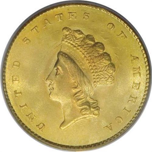 <B>1855 G$1 MS67 PCGS.</B></I> In 1854, a year that saw a number of alterations to the nation's money, one noteworthy change affected the gold dollar. The planchets used from 1849, the denomination's inception, were just 13 mm across, which made those early dollars the smallest American coins ever produced. By contrast, the revised planchets were 15 mm in diameter, an increase of just over 15%, with a corresponding decrease in thickness to maintain the same gold content. To match the new dimensions, James B. Longacre created new obverse and reverse designs, which bore a strong similarity to the "Indian Princess" three dollar gold pieces that made their debut in the same year.<BR> After mere months of production, however, the poor striking qualities of the new Longacre dies forced further changes, including an enlarged and redesigned portrait. This second alteration brought an abrupt end to production of the Small Head pieces, creating a short-lived variant with just two issues minted in appreciable quantities. Like the 1854 Type Two, the 1855 is highly sought-after by type and date collectors, and the appearance of a Superb Gem presents a tremendous opportunity. While lesser-graded representatives make regular appearances on the market, Heritage has offered this issue in Superb Gem just once before, in January 2005.<BR> The spectacular example offered here compares favorably to that piece. The strongly lustrous surfaces, butter-yellow with hints of peach, lime, and pink, offer a touch of delightful satin. While striking problems eventually doomed the Type Two design, this example offers above-average definition for the issue, and the clash marks present on the reverse are faint. The fields and devices are unperturbed to the unaided eye, and even under magnification, they border on immaculate. NGC has graded just five coins in MS67 and PCGS has certified just four, with none finer at either service (10/07).<BR><I>From The Pearl E. Pemberton Collection.</B></I><BR><BR><B>Coin Engraver:</B> James B. Longacre<BR><BR><b>Shipping:</b> Coins & Currency (<a target="_blank" href="http://www.heritageauctions.com/common/shipping.php">view shipping information</a>)
