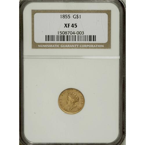 1855 G$1 XF45 NGC. NGC Census: (130/3845). PCGS Po