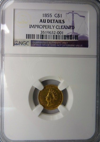 1855 GOLD DOLLAR TYPE 2 NGC AU CLEANED