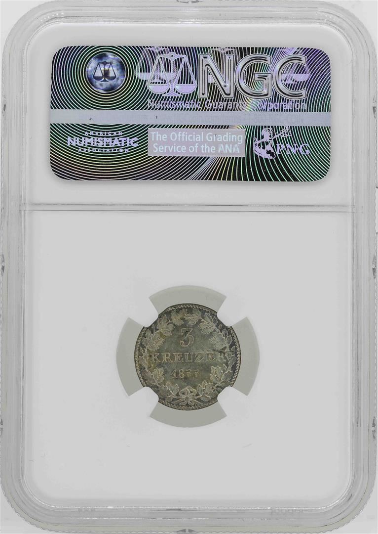 One 1855 Germany Frankfort 3 Kreuzer Coin Mint ERROR Curved Clip NGC MS65. NGC Certified.