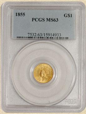 7040-26 1855 $ Gold Indian MS63 PCGS