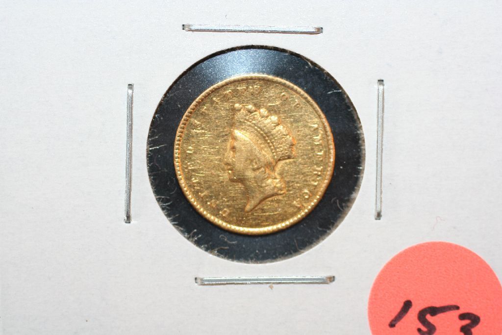 1855 Indian Princess $1 Gold Coin, Type II, Removed from Jewelry