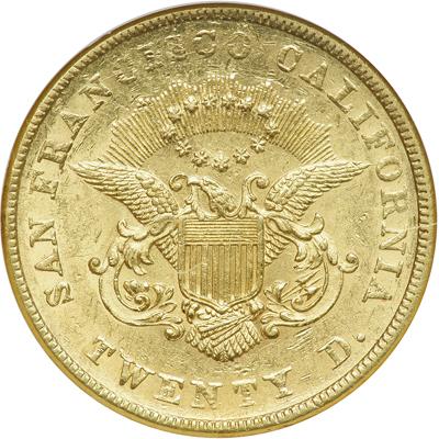 The most prolific issuer in the gold rush years in California was the United States Assay Office operated by Augustus Humbert as assayer. Eventually, a branch of the U.S. Mint opened in San Francisco, and began operations in 1854. In that year, a limited coinage began, although the earliest San Francisco Mint coinage was sporadic due to lack of parting acids to make standard 90% alloy gold planchets. A shortage of circulating coins developed due to this in the boom-time conditions of San Francisco and the adjoning communities. Area merchants asked Kellogg to produce gold coinage to satisfy this demand, and the firm struck large numbers of $20 pieces, under the name of Kellogg & Co. Only a few have been certified in Mint condition: Pop 5; 6 finer; 4 in 61; 2 in 62. (PCGS # 8914).