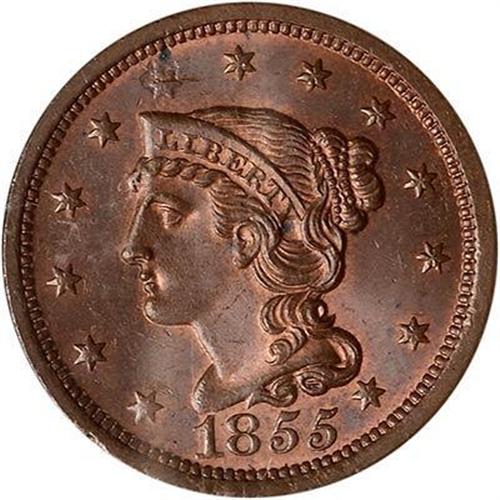 1855 L1C N-10 R1 Slanting 55 12star obv ds NGC MS64BN