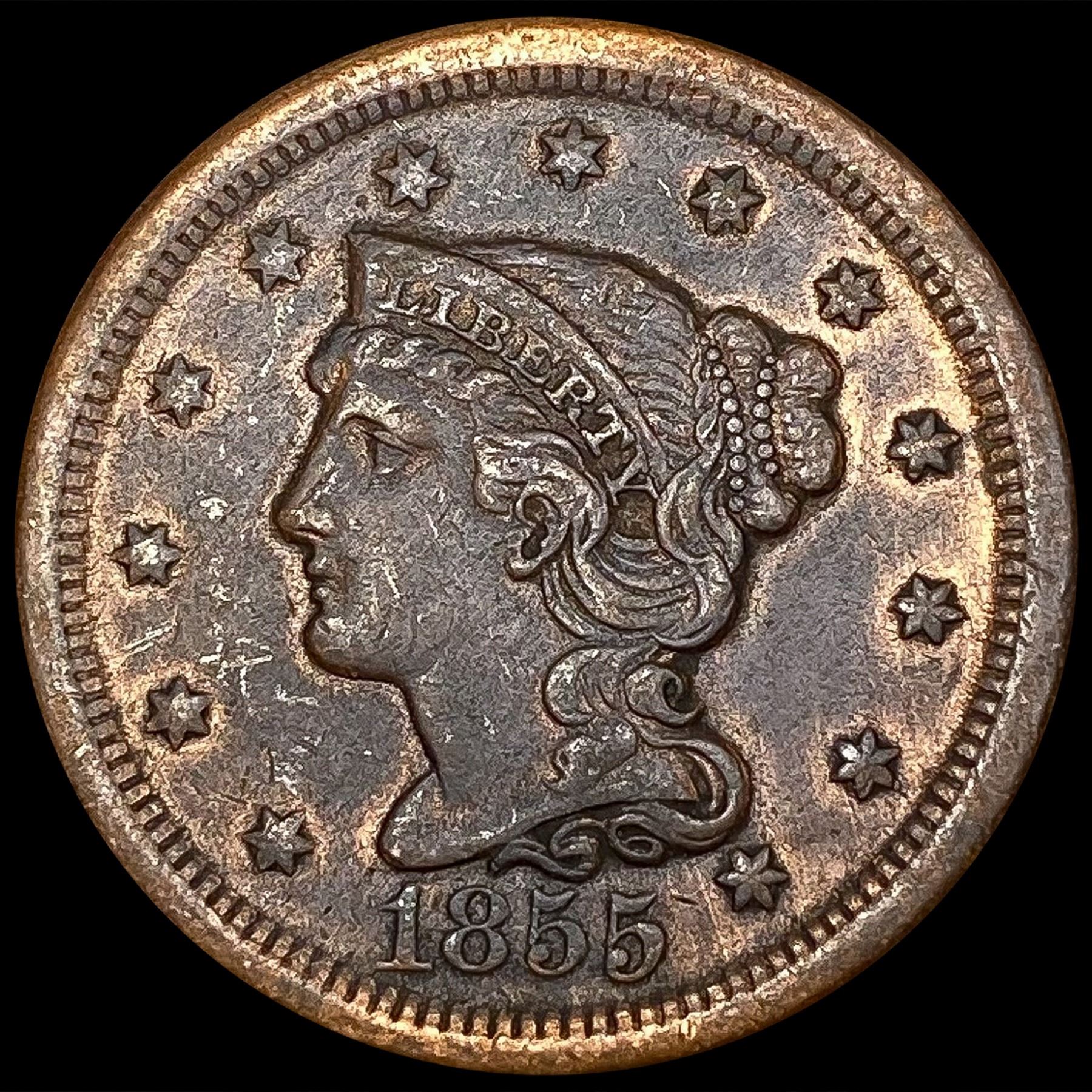 1855 Large Cent ABOUT UNCIRCULATED