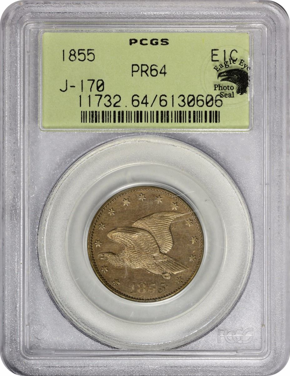 1855 Large Flying Eagle cent. J-170. J-196. S-PT1b-2. R-7. PR64 PCGS (PS), OGH. Choice Proof (9: 4,3