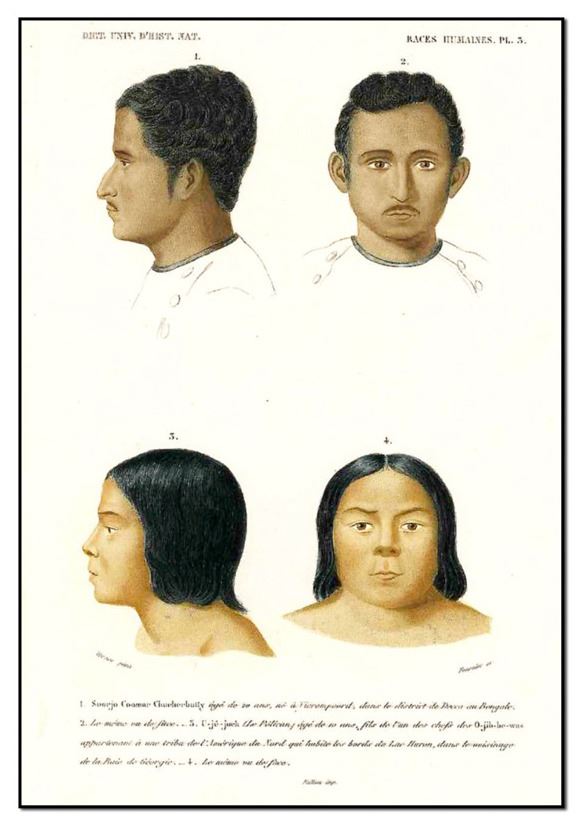 McKenney & Hall print of ''Uje-Jock'', aka as ''The Pelican'', a daughter of the Ojibbewa tribe which lived along the shores of Lake Huron. Also pictured is ''Soorjo Coomar Chucherbutty''. From the 1855 edition of ''History of the Indian Tribes of North America''. Measures 6'' x 10'', with accompanying text from book. Near fine condition.