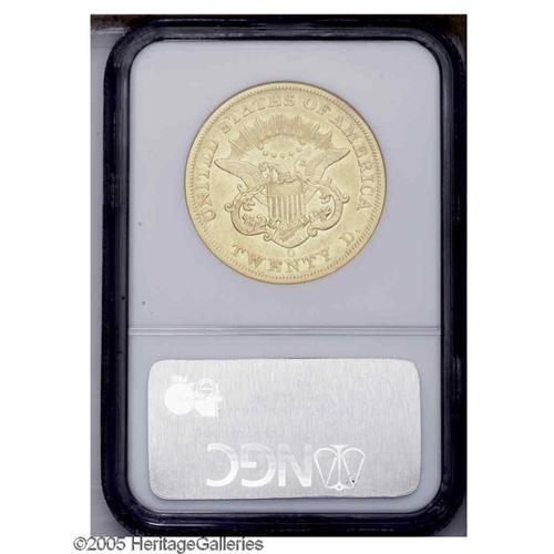<B>1855-O<$20> VF35 NGC.</B></I> Only 8,000 pieces were struck of the 1855-O double eagle. Yet, despite such an impressively low mintage this issue was long overshadowed by the famous New Orleans issues that immediately precede and follow it. Now it is now recognized as one of the four or five most difficult O-mints in the series. Fewer than 100 pieces are believed to be extant today of this Type One rarity. This is a reasonably attractive coin for the grade, with some claims to XF status. The devices are surrounded by remnants of the original prooflike surface that once covered the fields of this piece. The surfaces are minimally abraded, especially for the grade, with no marks that are worthy of individual mention. Even, moderate wear is seen over the highpoints and in the fields. All in all, excellent value for this seldom-seen O-mint rarity.