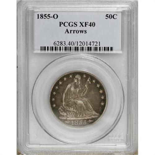 <B>1855-O 50C Arrows XF40 PCGS.</B></I> PCGS Population (10/320). NGC Census: (8/325). Mintage: 3,688,000. Numismedia Wsl. Price for NGC/PCGS coin in XF40: $108. (#6283)<BR><BR><B>Coin Engraver:</B> Christian Gobrecht<BR><BR><b>Shipping:</b> Coins & Currency (<a target="_blank" href="http://www.heritageauctions.com/common/shipping.php">view shipping information</a>)