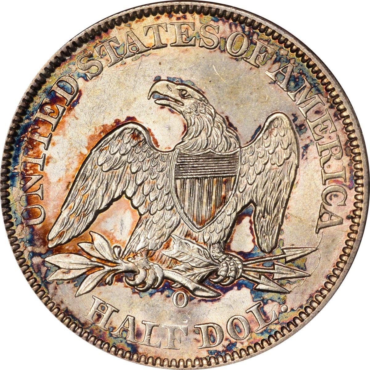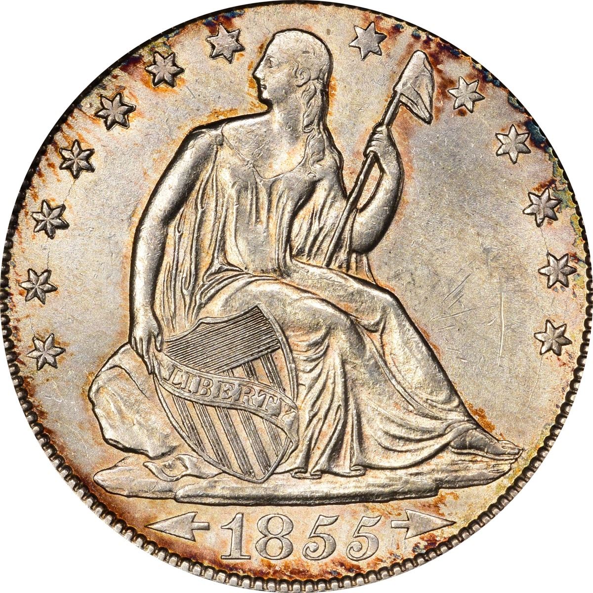 Frosty and lustrous with splashes of deep orange-gold iridescence on the obverse, and with splashes of crimson and neon blue on the reverse. Numerous peripheral obverse and reverse die cracks are seen. PCGS #6283
