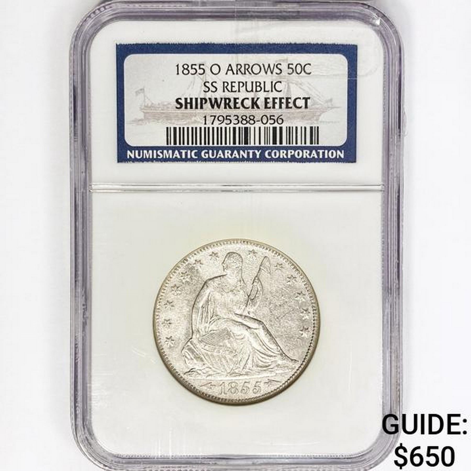 1855-O Arrows Seated Liberty Half Dollar NGC Shipw