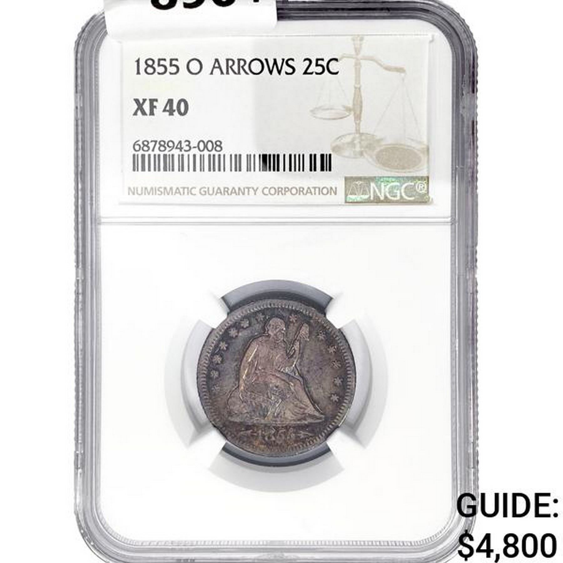 1855-O Arrows Seated Liberty Quarter NGC XF40