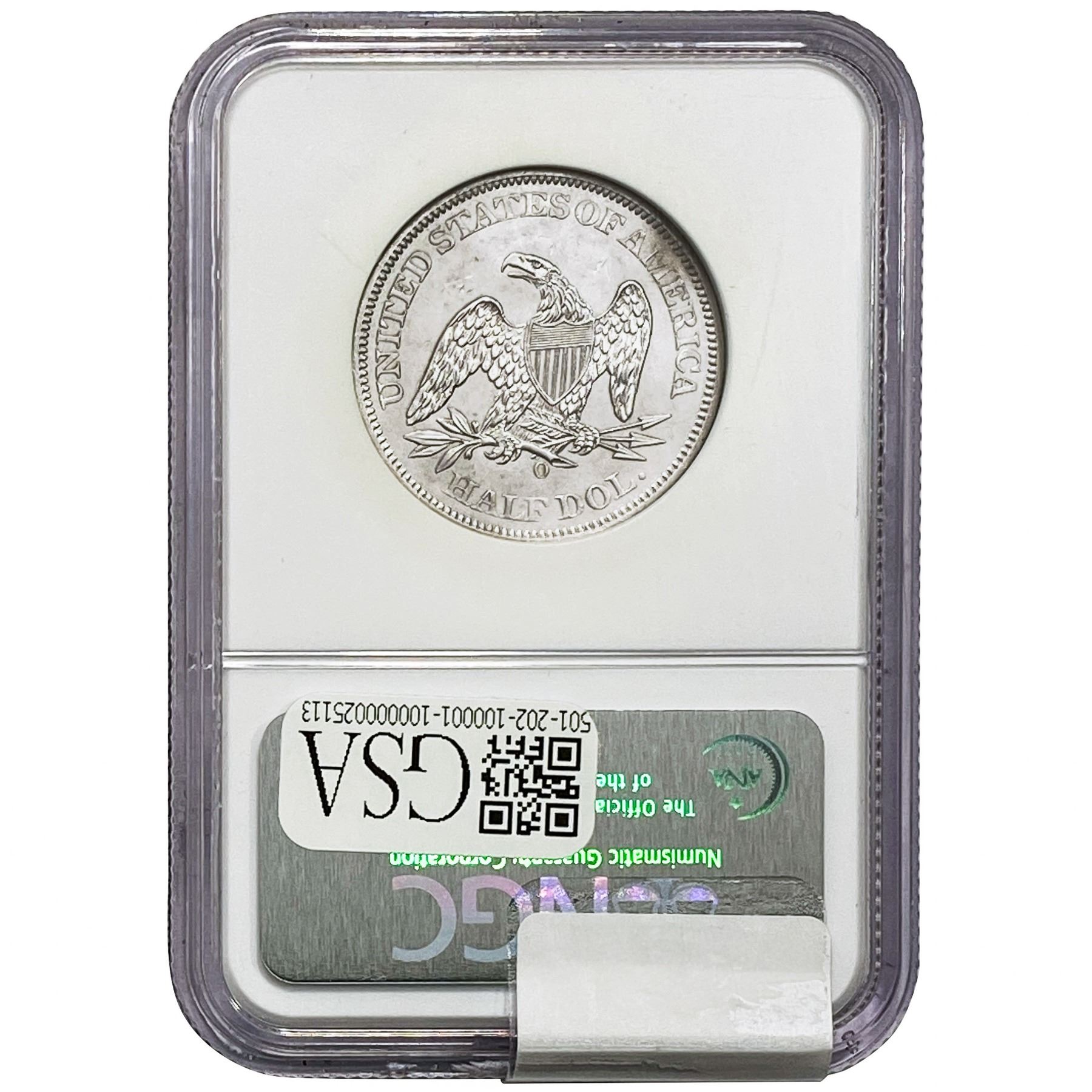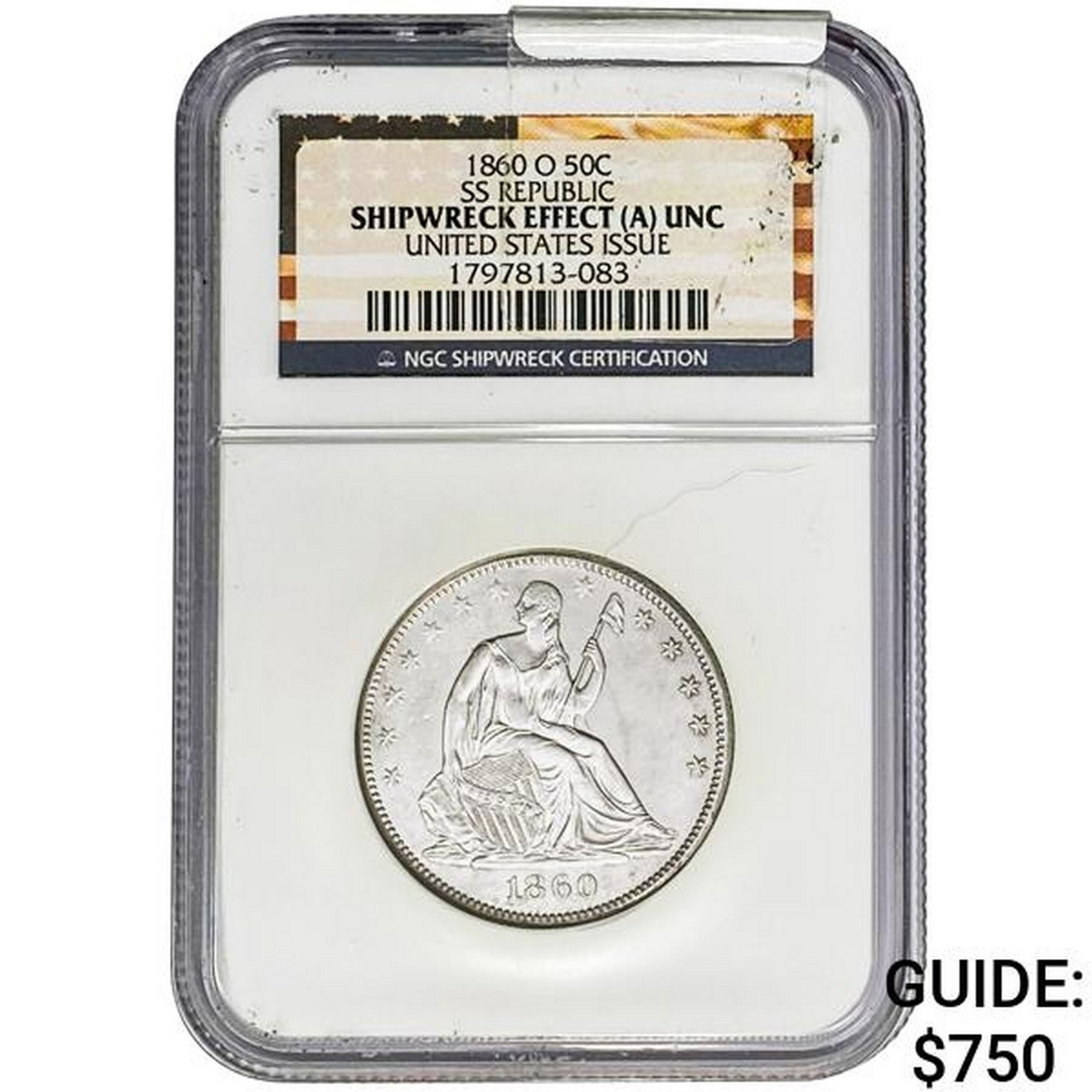 1855-O Arrws Seated Lib. 50C Shipwreck w/ Box NGC