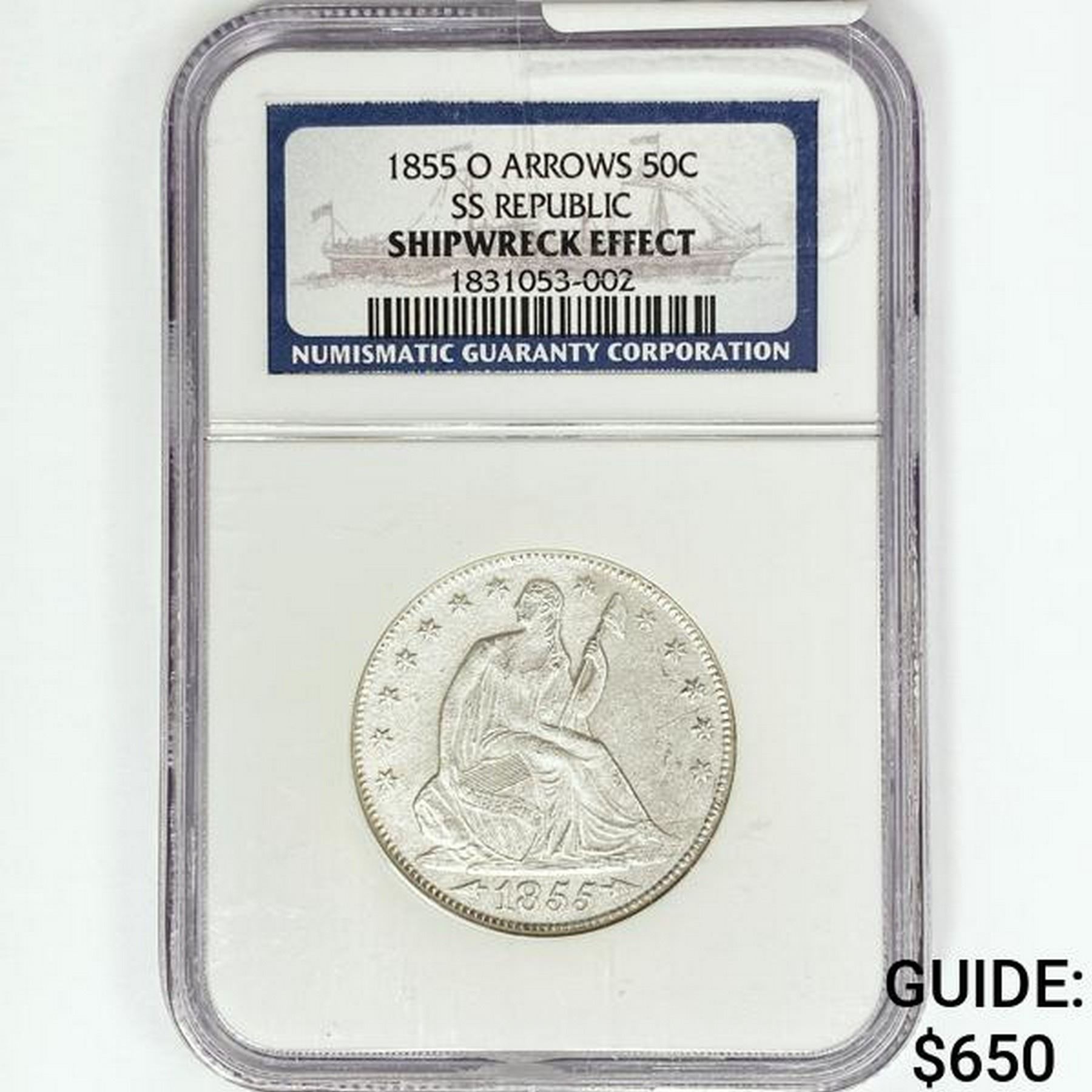 1855 O Arws Seated Lib. 50C NGC Shipwreck SS Rep B