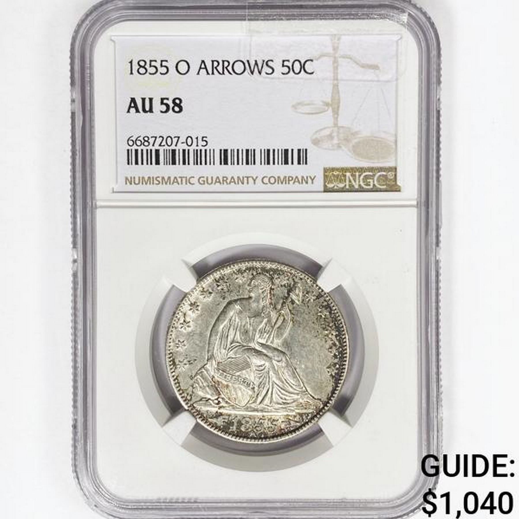 1855-O Arws Seated Liberty Half Dollar NGC AU58