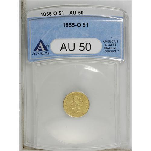 1855-O G$1 AU50 ANACS. Traces of luster are noted in t