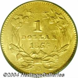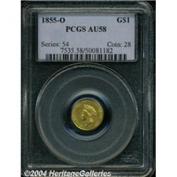 <B>1855-O<G$1> AU58 PCGS.</B></I> The only New Orleans issue with the Type Two design and always of interest as such. The orange-gold surfaces are frosty and nearly fully lustrous, and are altogether pleasing with just a little of the usually seen softness in the centers. <BR><BR><B>Important notice:</B> Heritage usually auctions material at the rate of 200-250 lots per hour. On some occasions eBay Live bid software or the Internet may not be able to keep up with the pace of the auction. We recommend placing a realistic absentee bid now as insurance to avoid disappointment. Occasionally the auctioneer may eliminate or reject an eBay Live bid, and the auctioneer may also reopen a lot after the close of the eBay live bidding (usually because we missed an audience bid), and may reject your bid even if it shows you as the winning bidder. By bidding via eBay Live, you agree that Heritage may award the lot to another bidder at its sole discretion under the circumstances described above or any other reasonable circumstances. Since eBay bids are not shown to us until we open the lot on the floor, we treat those bids just like floor bids. In most cases the floor responds before the eBay bid is presented to us, due to Internet lag time, so for consistency we have made it a policy that floor bids are always considered first over tie eBay live bids. Also please note that all Heritage lots purchased through eBay Live carry a 20% Buyer's Premium. Please make sure you read the Terms and Conditions before you bid. </span></font></tr></table></td></tr></table>