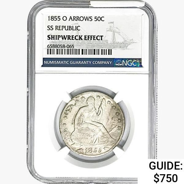 1855-O Seated Lib. 50C NGC Shipwreck Effect SS REP. ARWS