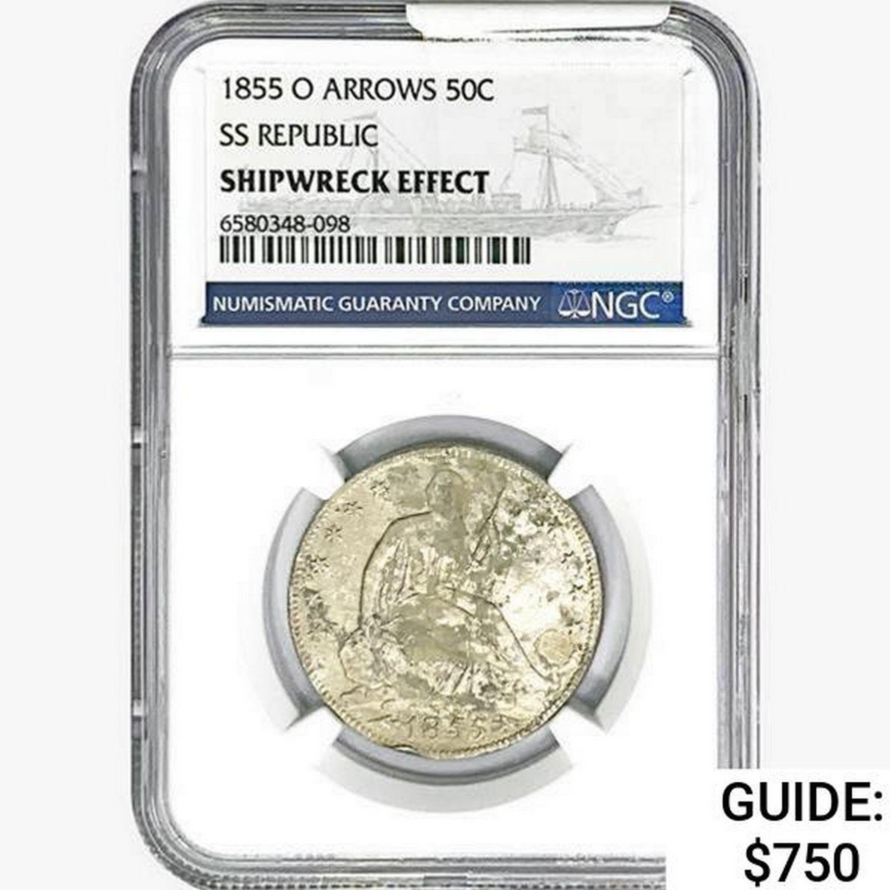 1855-O Seated Lib. 50C NGC Shipwreck Effect SS REP. ARWS