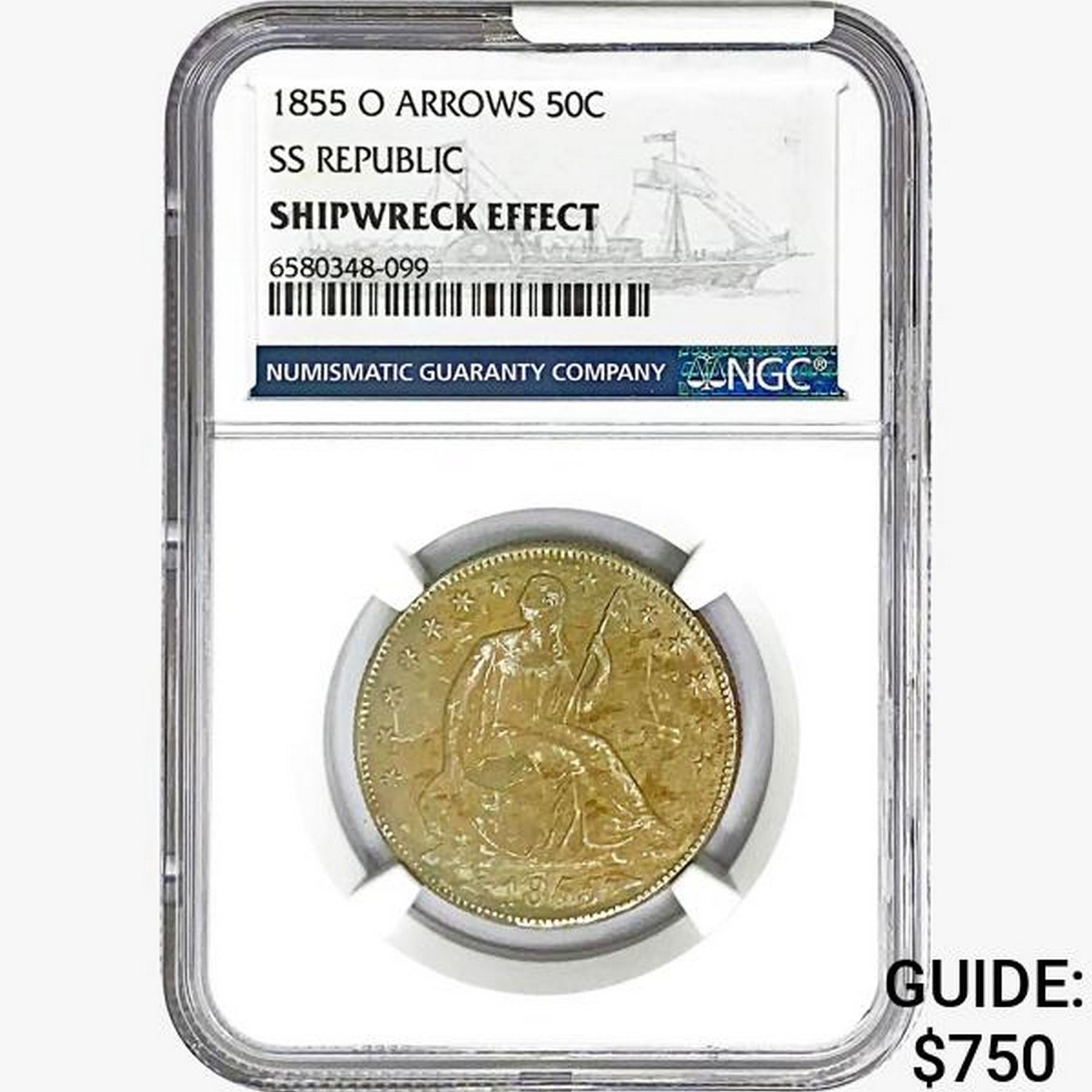1855-O Seated Lib. 50C NGC Shipwreck Effect SS REP